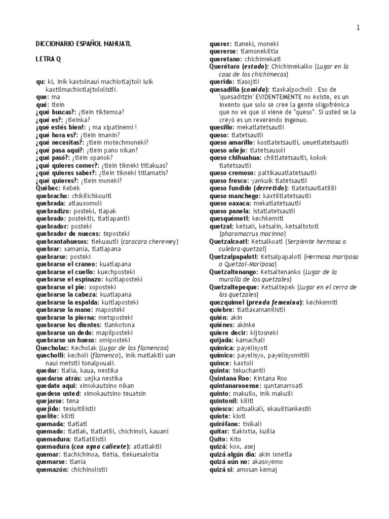 Diccionario Espanol Nahuatl Letra Q Queso Productos Lacteos